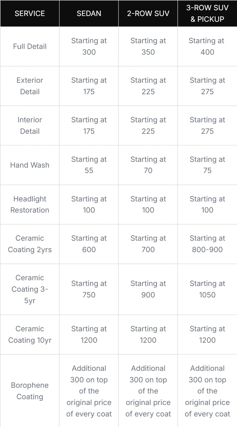 Backed by years of expertise and premium products, we deliver meticulous, careful detailing that leaves every inch of your vehicle looking flawless.